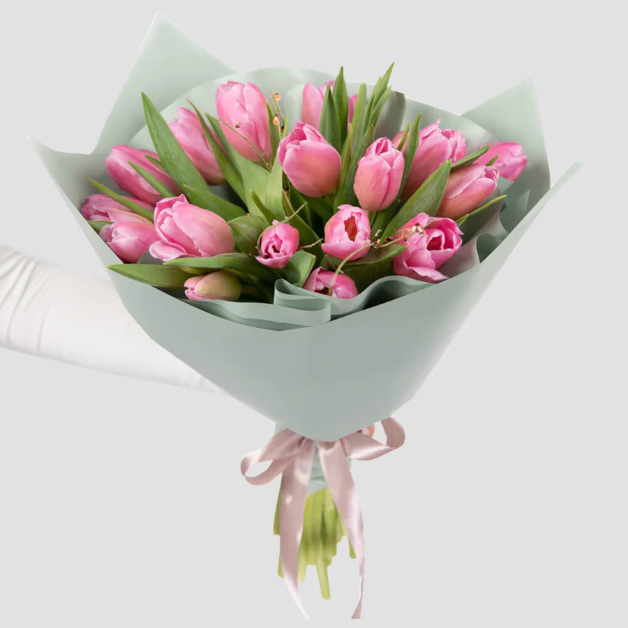 Buchetul contine: 21 lalele roz proaspete, de inalta calitate, ce compun un buchet impresionant.