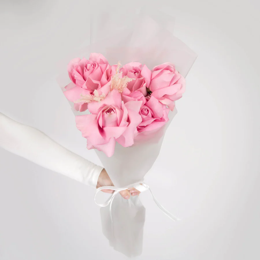 Buchetul contine urmatoarele flori proaspete, de calitate superioara: trandafiri si decoratiune.