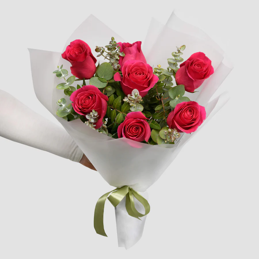 Buchetul contine: 7 trandafiri Pink, eucalipt si alte decoratiuni de inalta calitate, ce compun un buchet impresionant.