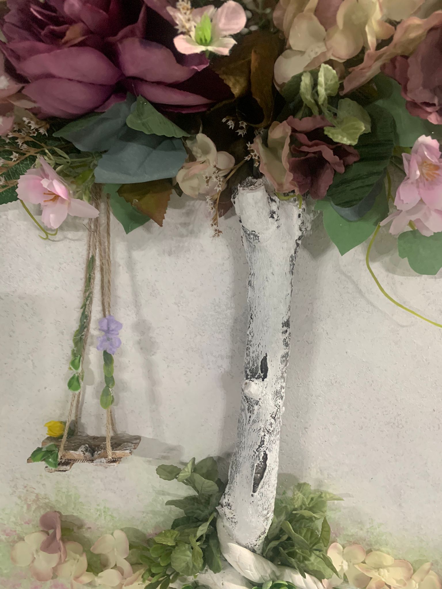 În tabloul de 50x40 cm, un copac mare se înalta într-o scena calma, iar lânga el se afla un leagan singuratic. Linia orizontala a leaganului aduce un contrast subtil cu verticalitatea impunatoare a copacului, sugerând liniste si invitatie la relaxare în mijlocul naturii. Este o reprezentare pitoreasca a armoniei dintre om si mediu.