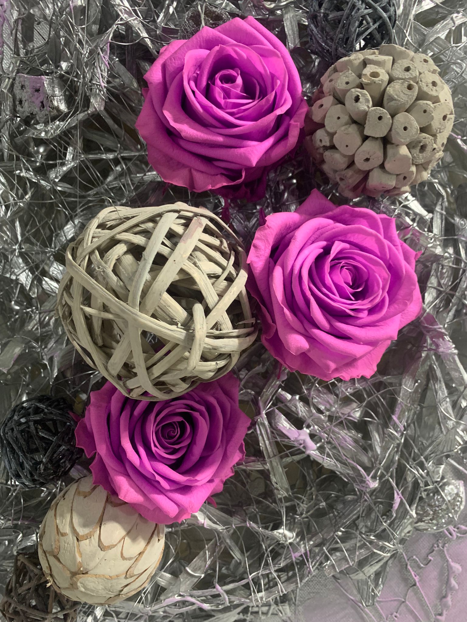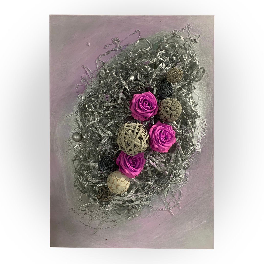 In tabloul Wired de 50x70 cm, firele imitate subliniaza un cadru elegant pentru cei trei trandafiri criogenati. Textura firelor adauga un aspect contemporan, contrastand armonios cu delicatetea trandafirilor congelati in timp, creand astfel o combinatie uimitoare de modernitate si frumusete naturala, conturand un tablou distinct si sofisticat.